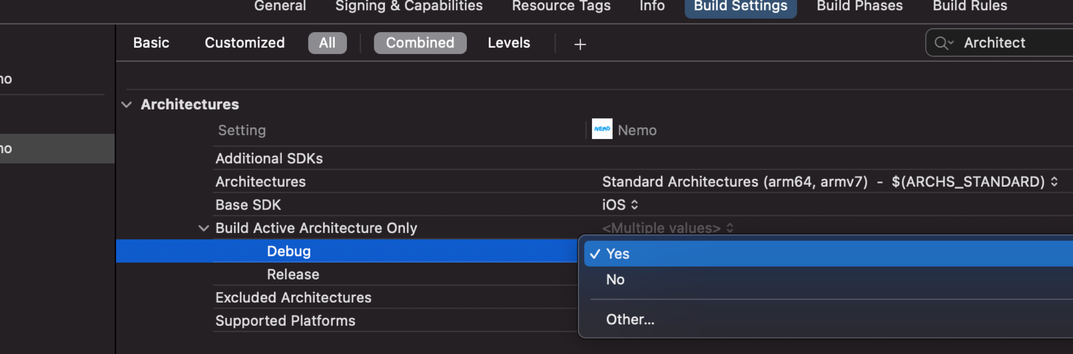 Yes로 설정할 경우, x64 x32 등 모든 아키텍처에 맞게 빌드하지 않고,