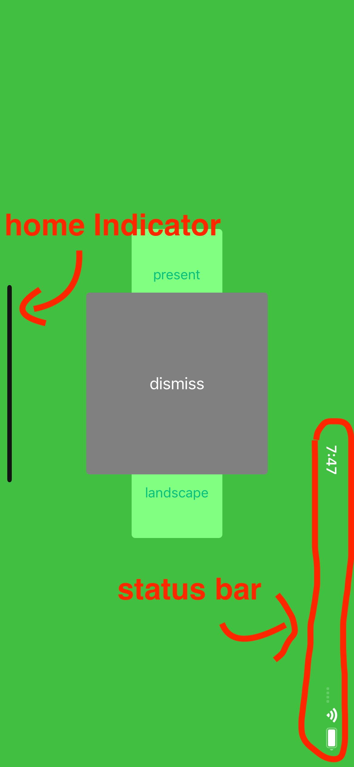 - home Indicator 와 status bar 의 orientation 이 이상하다. ( landscape 인 채로 남아있다. )