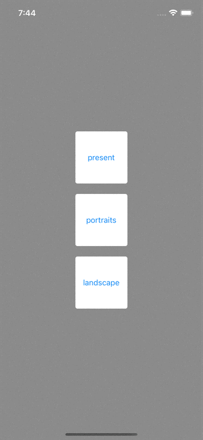 앱의 orientation 를 무시하고 디바이스의 orientation 에 맞게 present 되어버린다.