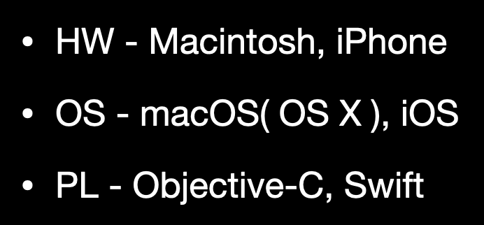 Apple은 하드웨어로 매킨토시(macOS가 들어가는 컴퓨터), 아이폰(iOS가 들어가는 스마트폰, 패드)을 만들었고,