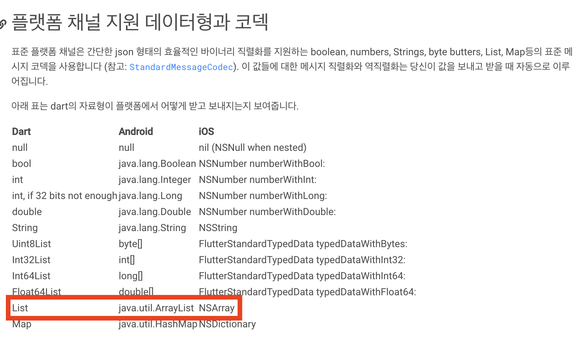 플러터에서 코틀린에 배열을 전달하게되면, java.uril.ArrayList 로 수신하게 된다.