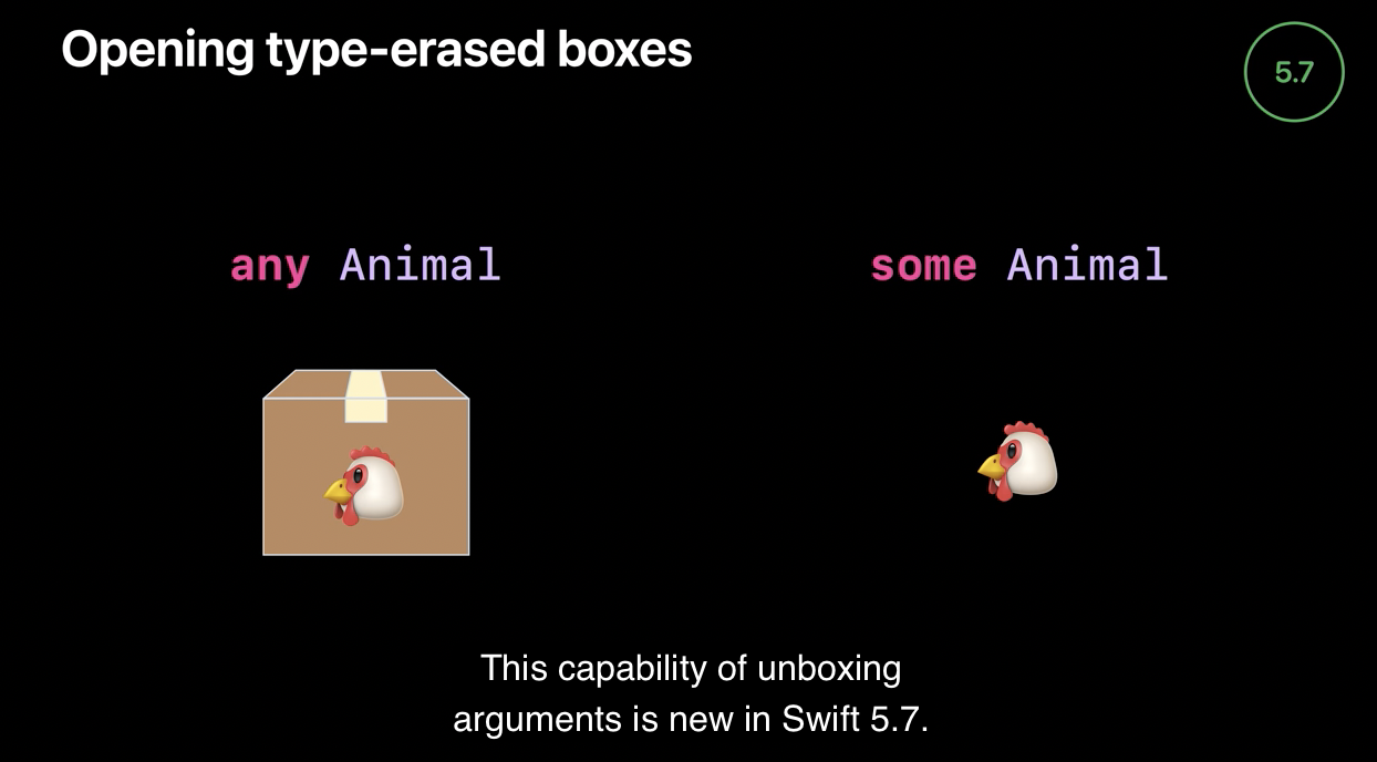 => any 타입을 unboxing 하여 some 타입으로 컨버팅 할 수 있는 기능을 컴파일러에 추가