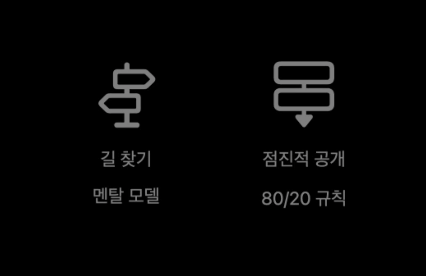- 점진적 공개 : 80/20 규칙
