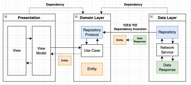 - 3. UseCase는 Repository의 Interface(protocol) 을 가지고 요청한다.