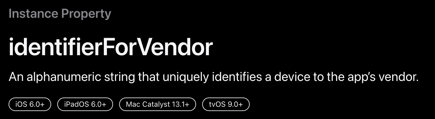IDFV 는, 벤더 식별자로, 한 디바이스 안에서 앱의 공급업체를 식별한다.