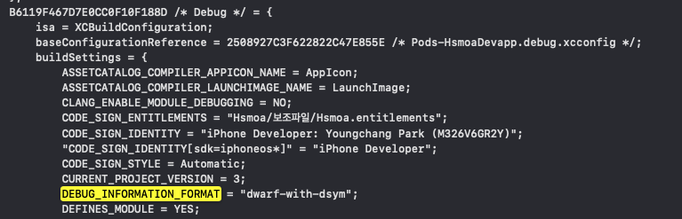 Xcode 프로젝트의 설정값들을 추출한 파일입니다.