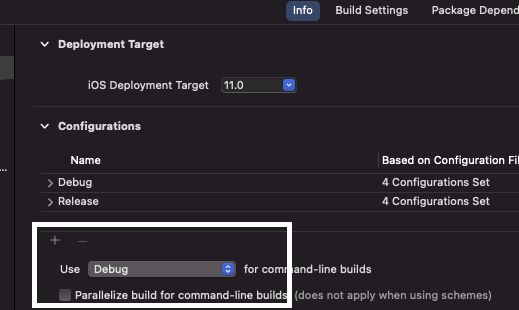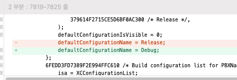 Project -> Info -> defaultConfigurationName 같은 설정은 xcconfig로 알 수 가 없고,