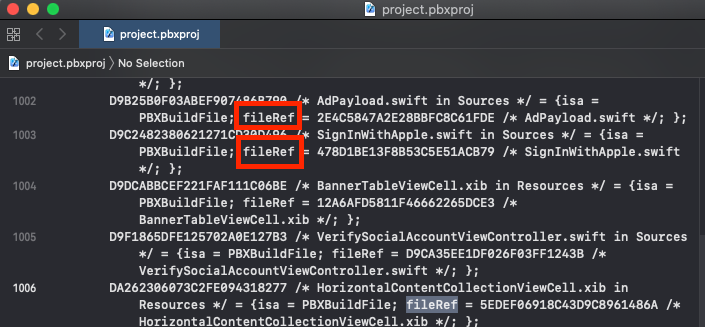 - fileRef는 New file 로 소스파일을 추가할 때 Xcode 에서 내부적으로 생성합니다.