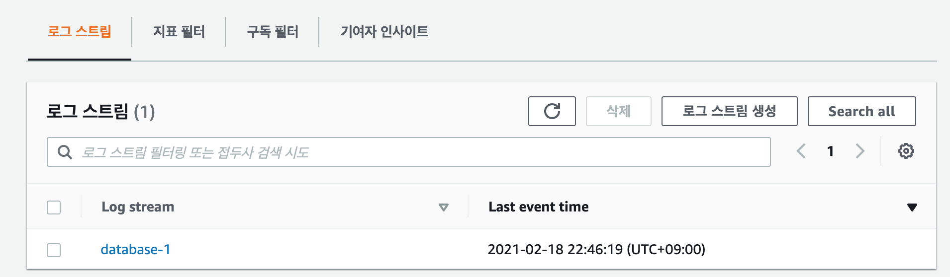 [ 로그 ] - [ 로그 그룹 ] 선택해주고,